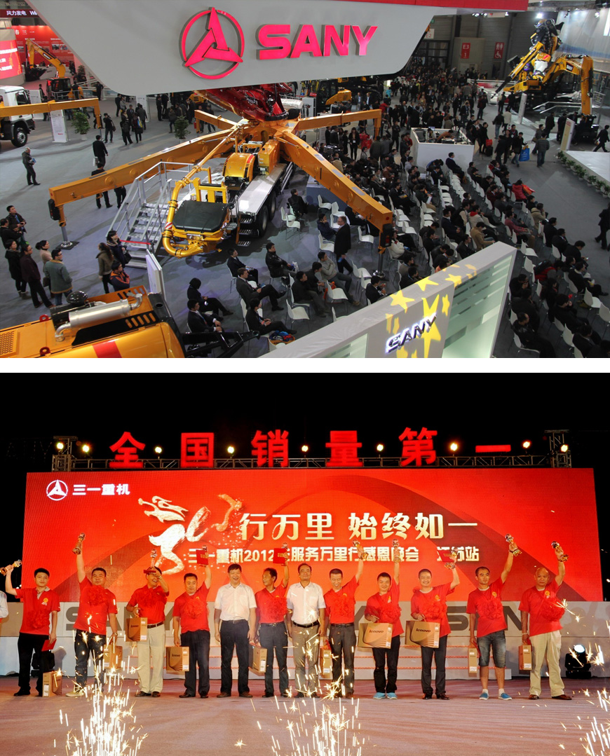 张东利又注意到,在历届的行业展览上,三一重工都借助新闻营销和事件营销大出风头。比如,2010年的慕尼黑宝马展,三一重工就一直以新闻报道的方式在炒作“臂架长度世界第一和混凝土泵送排量世界第一”的72米泵车,让三一名声大振。2011年的慕尼黑宝马展,三一重工又推出了当今世界最高水平、世界最长臂架的66米泵车,并在展前和展中持续报道,轰动整个行业。不幸的是,在展览的最后一天,该款泵车的红色臂架当场从高空折断,让三一尽失颜面。